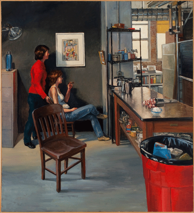 For many years, Marion’s studio was directly opposite the Aragon Ballroom, in Uptown. An ethnically diverse neighborhood rife with gang violence and peppered with tiny bars and liquor stores, Uptown was (and arguably still is) a living petri dish of humanity. A figurative painter for the duration of it’s not being cool, Marion painted lush and provocative nudes against the green linoleum backdrop of his small studio. The Cleaning Woman at Rest #2, shows an ample bosomed young woman grinning to herself, framed by a bottle of vodka and a particularly vehement red mop handle. A red rose sits in a box behind her, petals just shy of falling to the ground in shame or resignation. Some of these nudes are literal pornography. Transcribed in paint they retain their essential vulgarity but become beautiful in the sense that they become more true. These are paintings of male desire and an appreciation for the female form, and since male desire is the gooey problematic center of Western religious and philosophical struggles, the female figure is the perfect vehicle for themes of life, death, faith, and sex.
