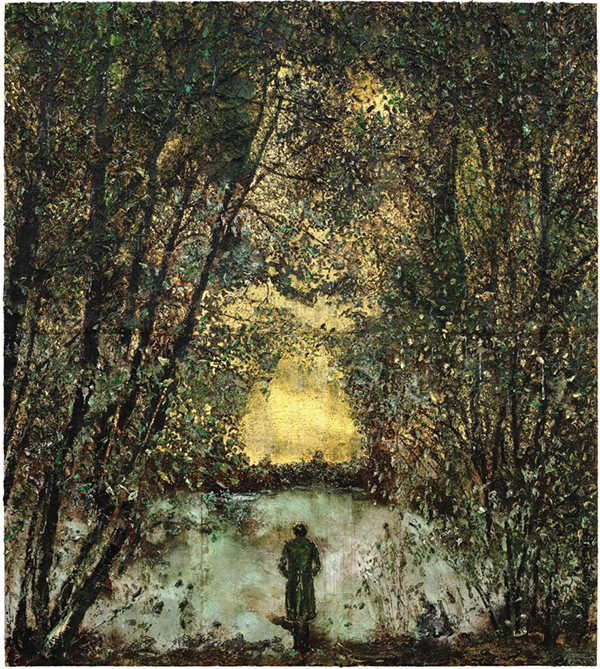 Anselm Kiefer, German, born 1945; Anselm fuit hic (Anselm Was Here), 2024; emulsion, oil, acrylic, shellac, gold leaf and sediment of electrolysis on canvas; 30 feet 10 1/16 inches x 27 feet 6 11/16 inches; Collection of the artist and courtesy Gagosian 2025.309; © Anselm Kiefer, Photo: Nina Slavcheva