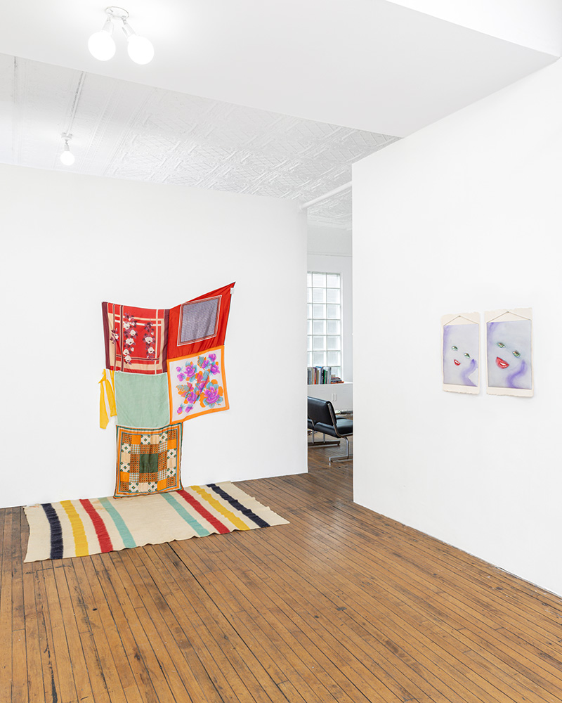 Eric N. Mack, And Re said: Ras Protective Collection, 2019. Silk scarves, fabric, thread, tape, pins, and wool blanket, 79 x 75 x 58 inches