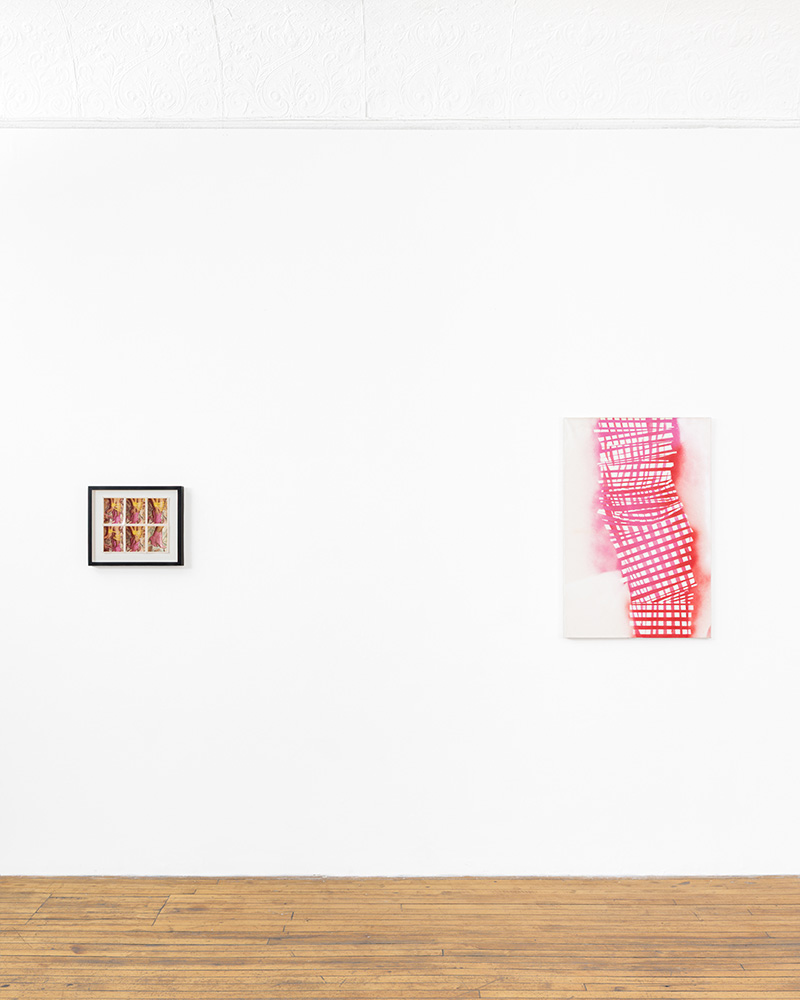 Take Antonio Lopez, the creative force who defined the look of 70s icons like Grace Jones and Jerry Hall. His “New York City, Shoe Series”—specifically the grid of Kodak Instamatic prints of Liliana Cavendish—uses vibrant pink boots and yellow ribbons binding the model’s limbs, dragging subcultural eroticism straight into high fashion. Cheryl Donegan’s, “Untitled (Dress, Kuba,)” fits right in here; her spray paint depiction of a torso bound in red gingham mirrors Lopez’s ribbons but adds a sharper sense of physical constriction.