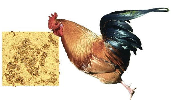 A conceptual and comical follow-up by Kenny Schachter featuring “collaborations” with chickens, cast in copper, silver, and gold, riffing on Rudolf Stingel’s practice.