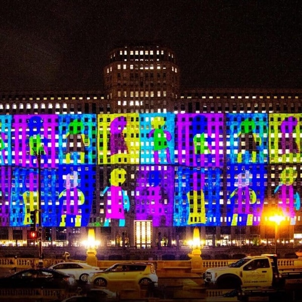 Nightly large-scale video projections feature new digital works, including pieces by Arts of Life artists celebrating 25 years of inclusive creative studio practice.