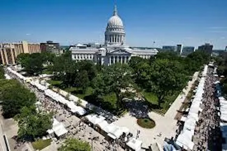 With its mix of music, entertainment, and outdoor dining, as well as over 500 artists exhibiting paintings, prints, photographs, sculpture, jewelry, handmade clothing and accessories, and fine craft, the fair draws nearly 200,000 visitors to Madison’s Capitol Square.