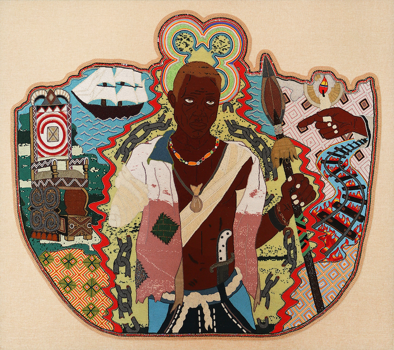 Big Chief Demond Melancon, Bras-Coupé (apron), 2016. Glass beads, rhinestones, and braided trim on canvas. Courtesy of the artist and Mariane Ibrahim.