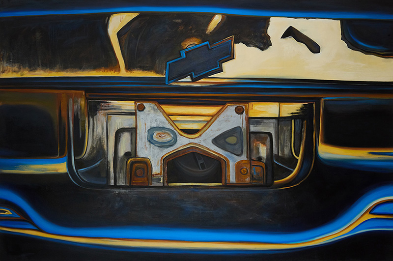 That fit is evident in the work itself. These are real-deal painterly paintings; you can see the artist’s hand in every stroke, finding a haunting kind of beauty in twisted metal. It’s a reminder that even in the things we’ve tossed aside to rot, there’s still a story worth telling.