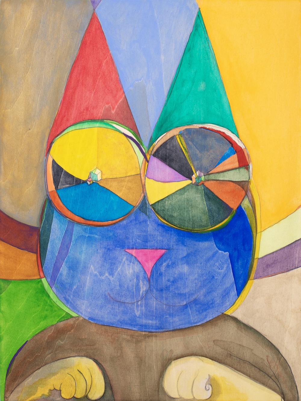“Tessercats” represents Wenzel’s return to the art scene following a hiatus earning a Master of Art History. The exhibition title, derived from a combination of "cats" and "tesseract," refers to a four-dimensional cube. While researching the early modernist avant-garde, Wenzel became interested in hyperspace, spatial dimensions beyond the three we frequent. His focus is on the historical avant-garde's quasi-spiritual ideas about this spatial fourth dimension and how it ties into madness, mental illness, and self-care. Wenzel, an artist, curator, and writer, weaves these abstract spatial ideas into his new series of serious and silly cat paintings. Influences on his art practice include Marcel Duchamp, Gilett Burgess, the cubists, and architect and designer, Claude Bragdon. Wenzel states, “All this became an enticing way to think through history, conceive of abstract space as a mental place and explore.”