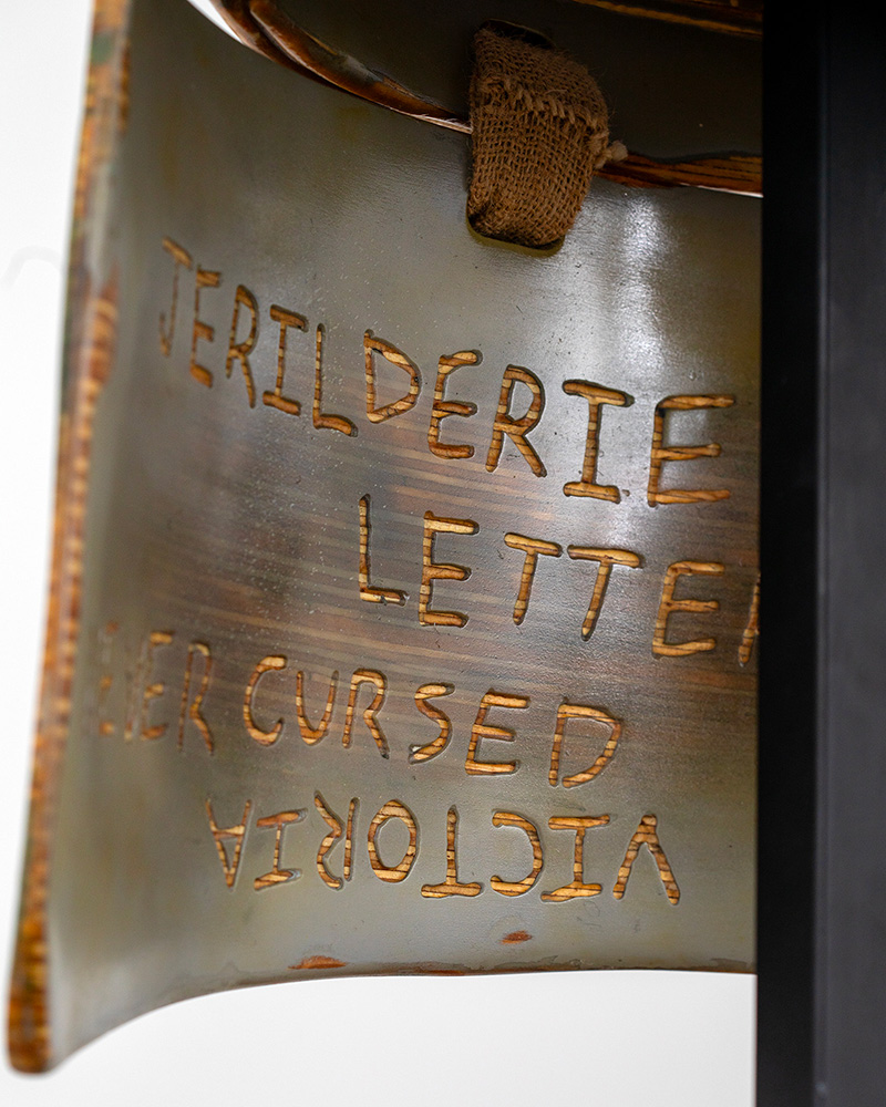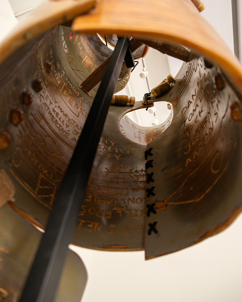 Finally, Goal, Is É Sin an Saol stands out as an elegant, mysterious replica of Ned Kelly's iconic suit of armor, meticulously crafted by Rea from pine, steel, birch, and other materials. The title, Irish Gaelic for "Such is life," creates a poignant link between the artist's own heritage and the fatalistic phrase widely attributed to the Australian bushranger just before his 1880 execution. The sculpture invites interaction: viewers who peek inside the armor will discover words carved into its interior—perhaps Rea's private thoughts, perhaps other Gaelic phrases. This piece follows a historical practice of embedding messages in art, resulting in yet another deeply personal work by Rea that might serve as a meditation on both protection and vulnerability.