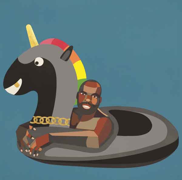 Derrick Adams (b. 1970, Baltimore, Maryland) is a multidisciplinary artist who closely considers the influence of popular culture on the formation of self-image. His work also questions how African American experiences intersect with art history, American iconography, and consumerism.