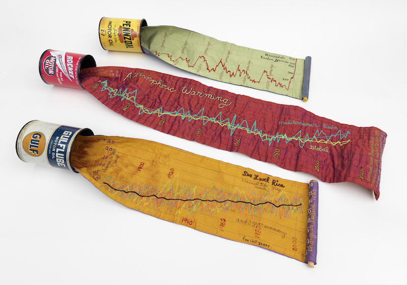 A lengthy research phase builds a foundation for this artwork as I investigate data collected by instruments such as satellites and ocean floats, and modeling from climate proxies such as ice cores. I translate the abstract scientific data collected by global agencies including WMO, NOAA, & NASA, into visual art that challenges people irregardless of their level of scientific knowledge to consider the environmental science of climate change.