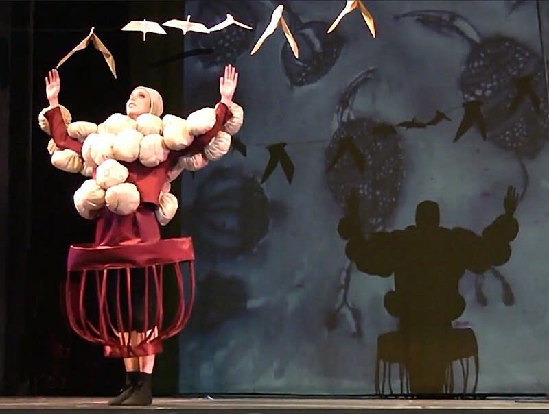 Sandra Leonard’s work focuses on creating living sculpture, using the human body to blur the lines between art and theater. Her costumes, often large and sculptural, impede movement in unexpected ways, influencing the choreography itself. Her collaborative approach with performers turns each wearer into a kinetic sculpture, bridging the worlds of visual art and performance.