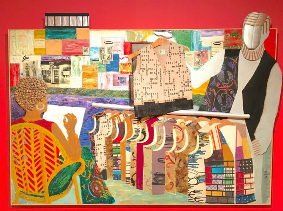 Top image: Jae Jarrell, Going to NYC, 1994. Mixed media,