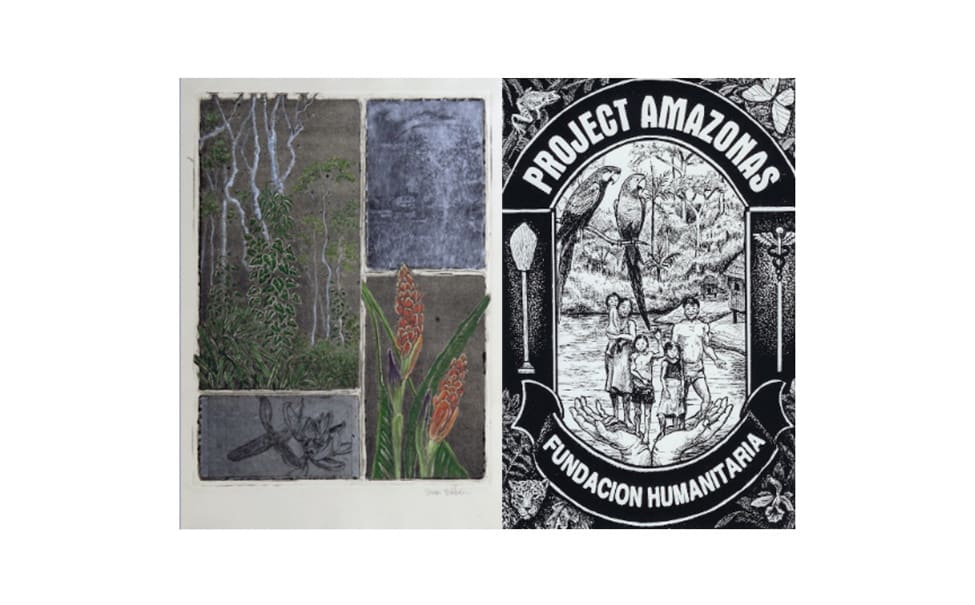 Sharon' Bladholmʼs work has been profoundly influenced by her participation as artist, on scientific expeditions to remote and biologically diverse ecosystems of the Peruvian and Brazilian Amazon on expeditions with the Field Museum, Conservation International and Andes to Amazon Biodiversity Program. She has long explored the interfaces of art, science, conservation and nature in her many series of artworks in diverse mediums including glass, bronze and ceramic, as well as works on paper.