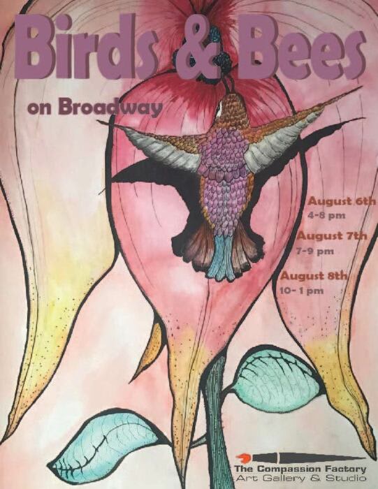Featured artists are Therese Angarone, Bob Hilger, and Rebecca Marfise. Printmaking demos will take place on August 6th and 7th at 7 pm.