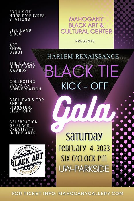THE BLACK TIE KICK OFF GALA IS THE OFFICIAL KICK OFF EVENT FOR THE 2ND ANNUAL WISCONSIN BLACK ART & CULTURE EXPO (EXPO2) . PRODUCED BY MAHOGANY BLACK ART & CULTURAL CENTER AND MAHOGANY GALLERY, CO-SPONSORED BY THE UNIVERSITY OF WISCONSIN PARKSIDE.