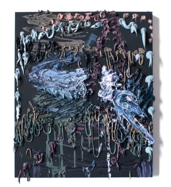 “Defiantly yours” features a new body of paintings by Boris Ostrerov that highlights the artist's use of tactility and the three-dimensionality of oil paints on canvas. The resulting abstract paintings convey whimsy and humor as they do brusqueness and candor.