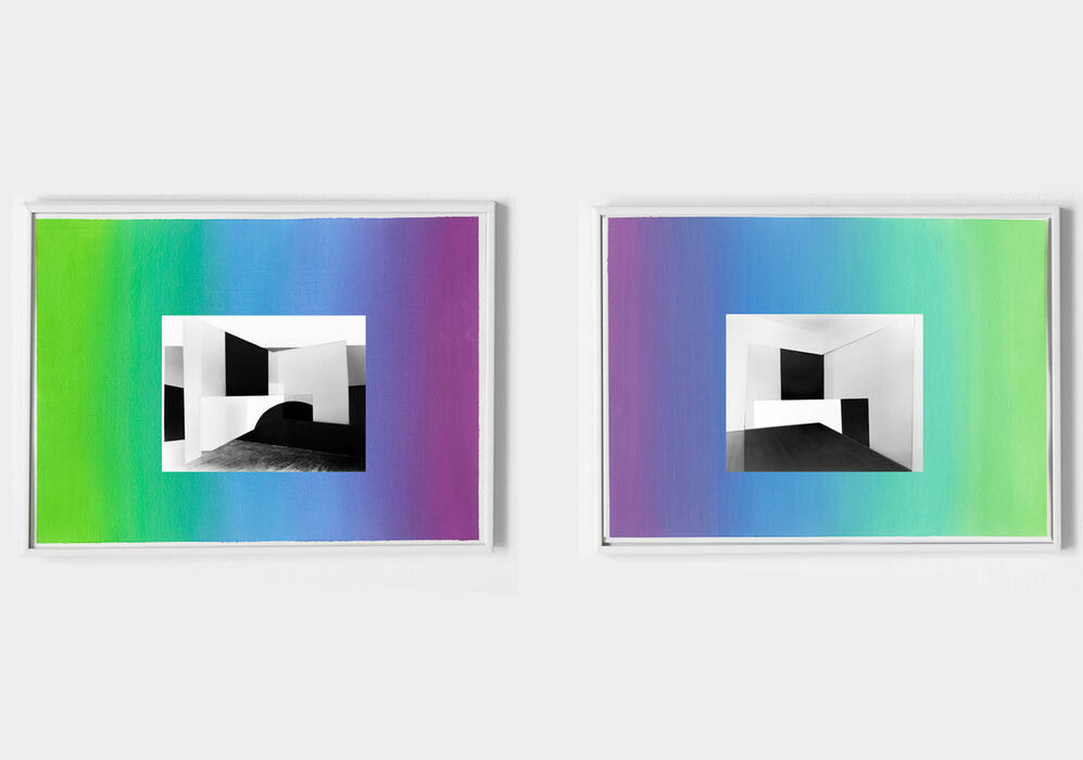In this collaborative two-person exhibition, Colleen Keihm and Nicole Mauser use photography, painting, collage, and installation to construct abstract disoriented spaces – making marks by removal and absence. The mechanical aspect of film photography by Keihm and exerted muscle memory embedded within painting by Mauser describe similar desires for control yet strategically leave openings in their process for unpredictability. These gaps become spaces for the viewer to inhabit. Physical cuts into material prioritize viewers’ engagement in perception so as to frame the act of looking as subject.