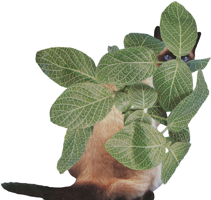Eichhorn’s larger-than-life indoor/outdoor Cats & Plants sculptures humorously meld magazine model cats with finely cut out plants of varying species on their heads. Wong’s sculptures and photography pay homage to his wife’s childhood cat Snoopy who was revealed - through readings with a telepathic animal communicator - to be one in a long line of animals reincarnated from Omar, the artist’s recently deceased Holland Lop rabbit.