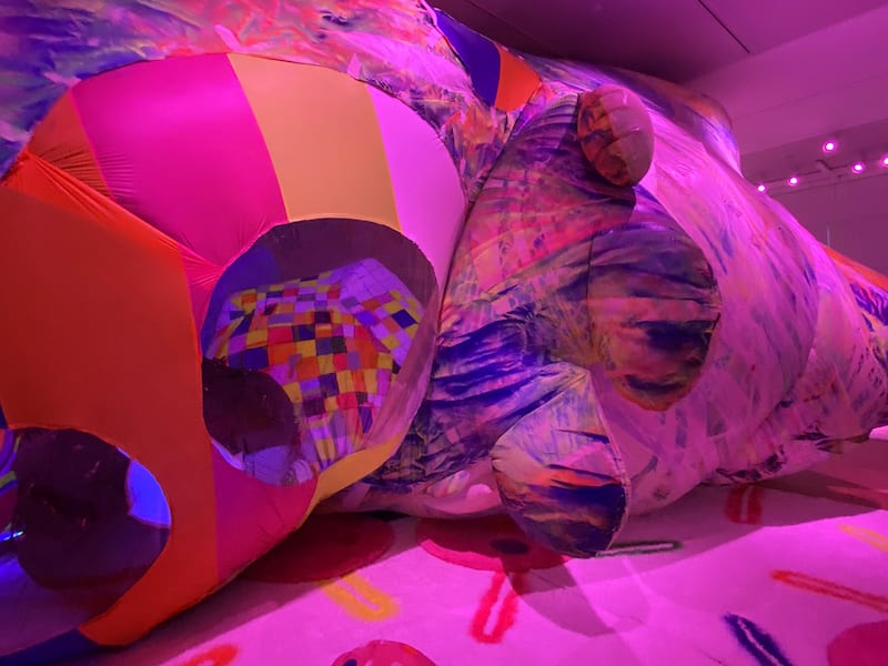 Cosmoculus features monumental air-filled sculptures and interactive experiences utilizing virtual reality, light, and sound. Exploring the notion of a dimensional painting, the allure of color, and the whimsical nature of art, Claire Ashley creates one-of-a-kind immersive environments. Viewers are encouraged to peer through translucent windows of the sculptures that reveal internal growths of painted and textured forms pulsating with color that blend seamlessly within the sea-like soundscape that reverberates throughout the gallery. Utilizing an Oculus headset, one can experience the psychedelic array of colors that envelop the viewer in a completely wonderful disorienting experience. Claire Ashley will present an artist lecture that will be open to the public on Tuesday, September 21, 2021 at 4:15 pm in the Peeler Art Center Auditorium.