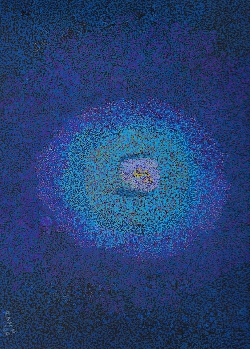 Jody Rasch is a New York-area artist whose work is based on themes from astronomy, biology, physics and spectra. Rasch transforms scientific images from radio astronomy, electron microscopy, particle accelerators and individual element’s spectrum, discovering their underlying patterns and working with color and design to create work that is both representational and abstract. Rasch edits and transforms the scientists’ images, yet his images remain representative of what the scientist would see and recognize. The scale of the actual images contrasts with the size of the artwork: the biological and physics images are massively enlarged and the astronomical images are equally drastically reduced. The goal is to bring the images to a more human scale so that the viewer can relate to the real elements that make up our world and universe. The artist incorporates gold in many of his works. This is drawn from medieval paintings in which artists painted religious figures with gold halos or utilized a gold background. For Rasch, the gold symbolizes science taking over from religion as the explanation for why things are the way they are. He utilizes a variety of techniques and media, including oil, acrylic paint, pastels, colored pencil and pen/ink.