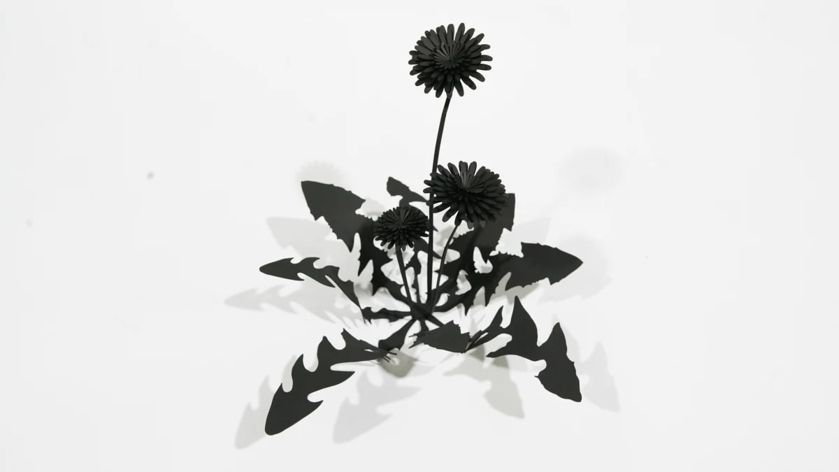 Like the peacock chair and Cadillac they surround, Mohamoud’s black steel dandelions are notable for both their beauty and their artificiality. Part of a larger installation project called Faith in the Seeds, the dandelions memorialize Black people killed by police violence. Dandelions are hardy wildflowers that can survive in even the harshest conditions, and are known to be among the most nutritious plants on the planet.