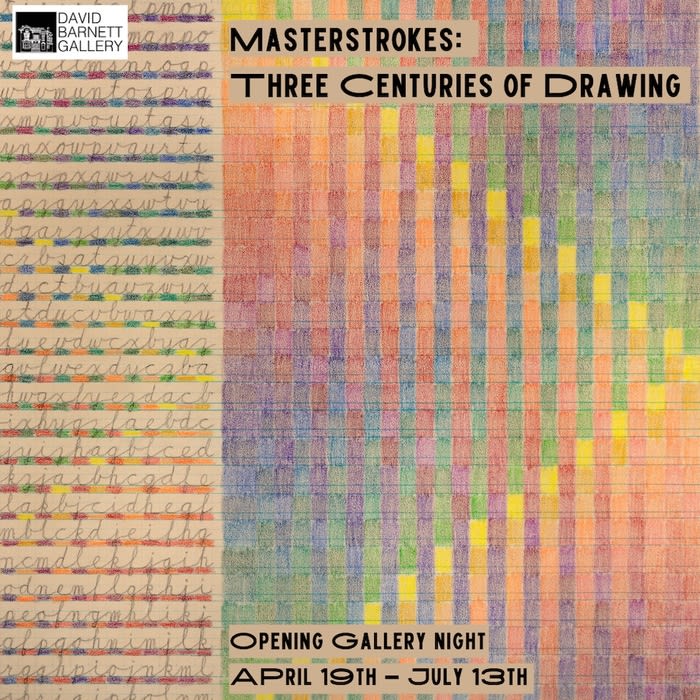 The David Barnett Gallery Presents Masterstrokes: Three Centuries of Drawing. Throughout history, drawing has been regarded as the foundation for artistic practice and the very basis for the visual arts. drawing can be a kind of chameleon, morphing from linear to painterly. This exhibition will examine the exploratory nature of drawing- its emphasis on observation. problem-solving, and composition- and how it shows the artist's hand in a range of styles from realistic to abstract. Drawing, a crucial part of artistic tradition, has become a tool for aesthetic thought and investigation and a vital medium in its own right.