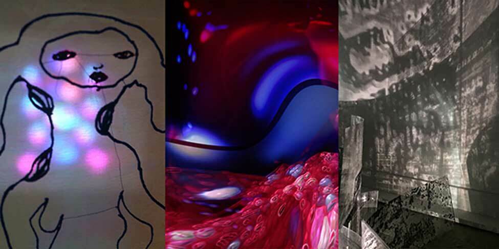 Fainshtein, Shevchenko, and Xanos work with light projection installation focusing on personal narratives of body, memory and perceptual shifts light as media. The artists explore light as mediated through a spectrum of materials, including printmaking, animation, and digital processing. For the Light Matters exhibition Fainshtein, Shevchenko, and Xanos would use various iterations of projected and reflected light to investigate synthetic relationships within their constructed image/space immersions. Each site specific interactive installation would create an immersive environment for the viewer to experience within a particularly composed architectural space.