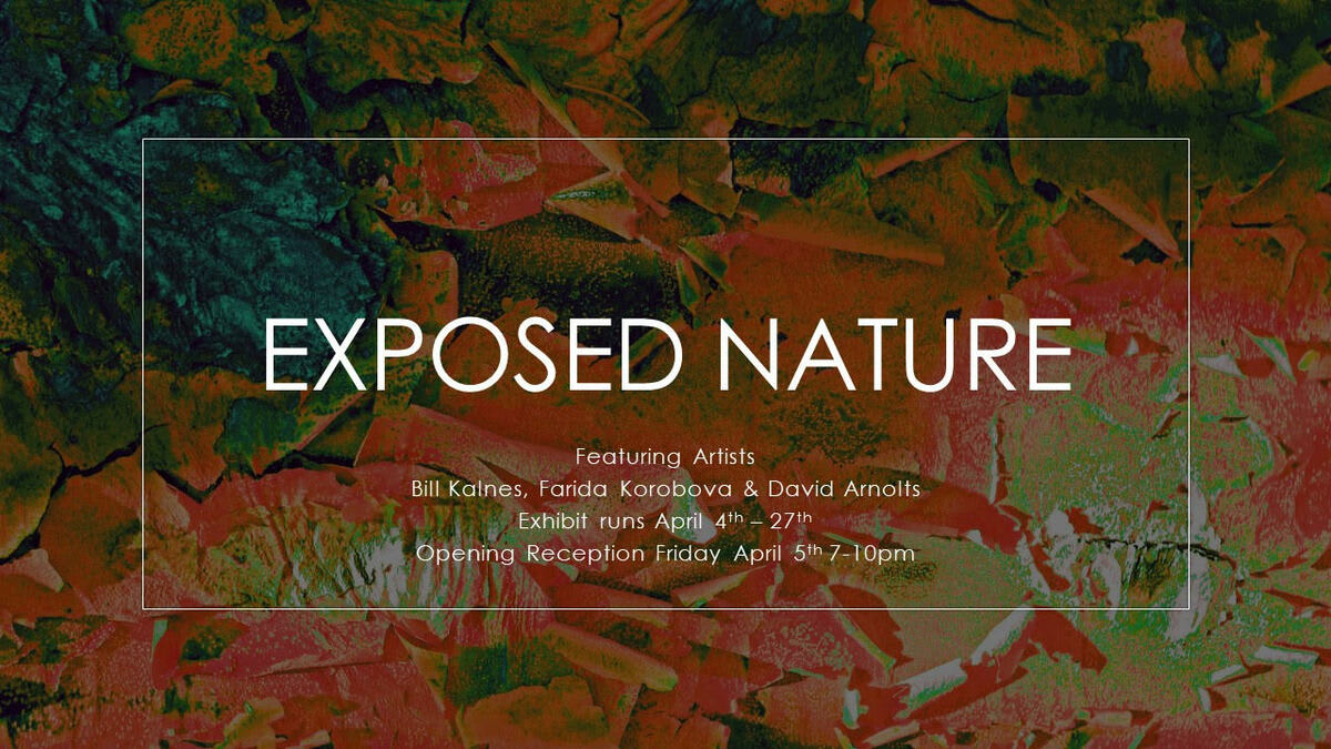 Exposed Nature features photographer Bill Kalnes, Mixed Media Farida Korobova & Wire Arborist David Arnolts. These three artist take a look at Nature is show it at it's best.