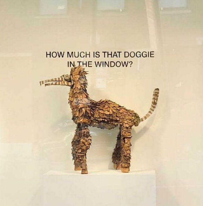 Top image: John Maloof, Feathered Dog, wood and walnut shavings, 24 x 18 x 10 in.