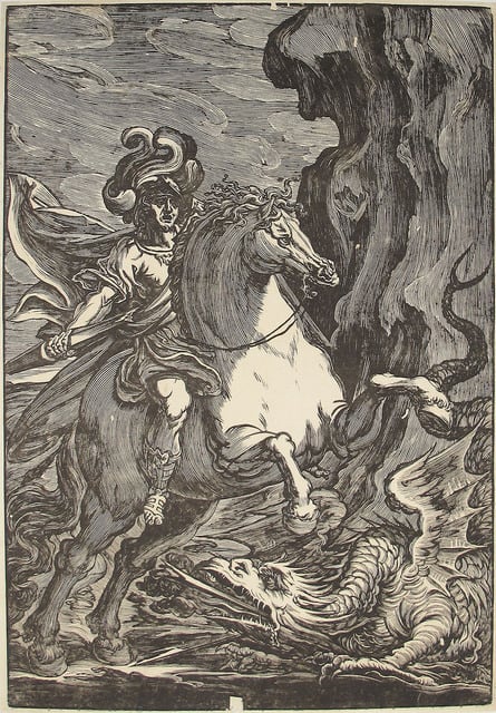 Image: Giorgio Scolari, Saint George and the Dragon (2nd State), c. 1600, Woodcut.