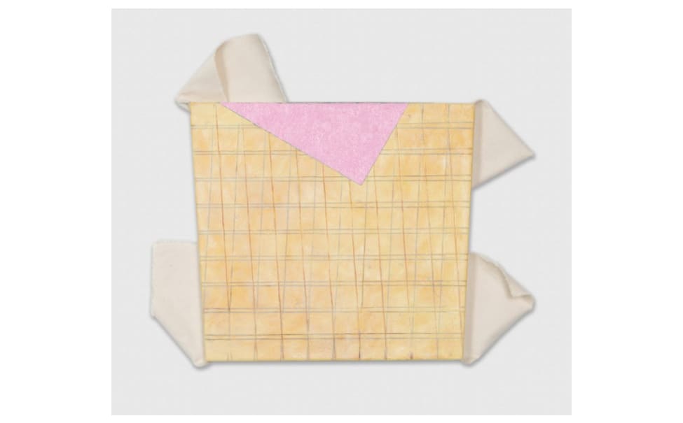 In his first solo exhibition at Kavi Gupta, Chamberlain’s omnivorous bonhomie is clear.Painting’s extensive history makes it ideal matter to be gathered into its own investigations. Chamberlain refers to his folded, sloped paintings as canted. Here, Stella’s writ large en petit: referring is always a little unmaking. Cant: “verb: dated.” Not a definition but a description, for hypocritical, chanting, and slanting, which are now just hypocritical and slanting. It’s close to “can’t,” which is short for the painter’s fable “I can’t go on, I must go on.”