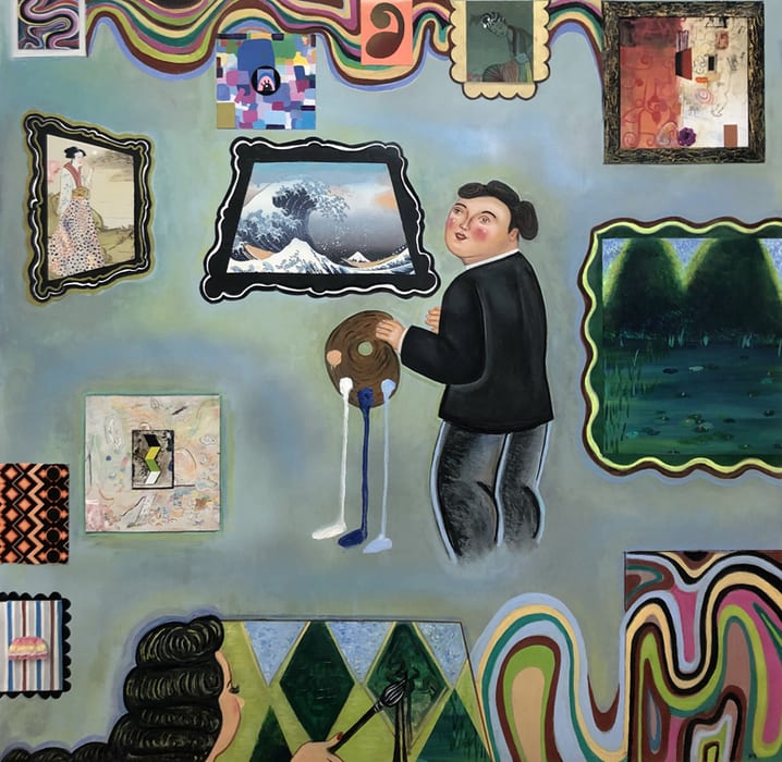 Image: Phyllis Bramson, Painting Partners (painting as a past time), 48 x 48 in, 2021