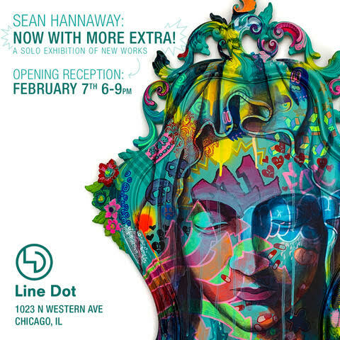 Line Dot is thrilled to present 'Sean Hannaway: Now with More Extra!' featuring a new collection of original paintings. Join us for drinks at an opening reception with the artist on Friday, February 7th from 6-9pm.