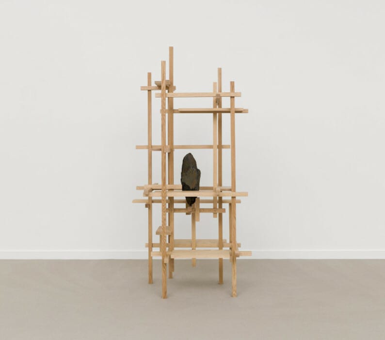Image: Sung Jang, Given / 2022, Granite and red oak, 79h x 41w x 32d in