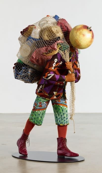 Top Image: Yinka Shonibare, CBE, RA (British-Nigerian, b. 1962), Earth Kid (Boy), 2020, Fiberglass mannequin, Dutch wax printed cotton textile, globe, brass, steel baseplate, netted bag and found objects, . Walter R. Beardsley Endowment for Contemporary Art, 2020.017